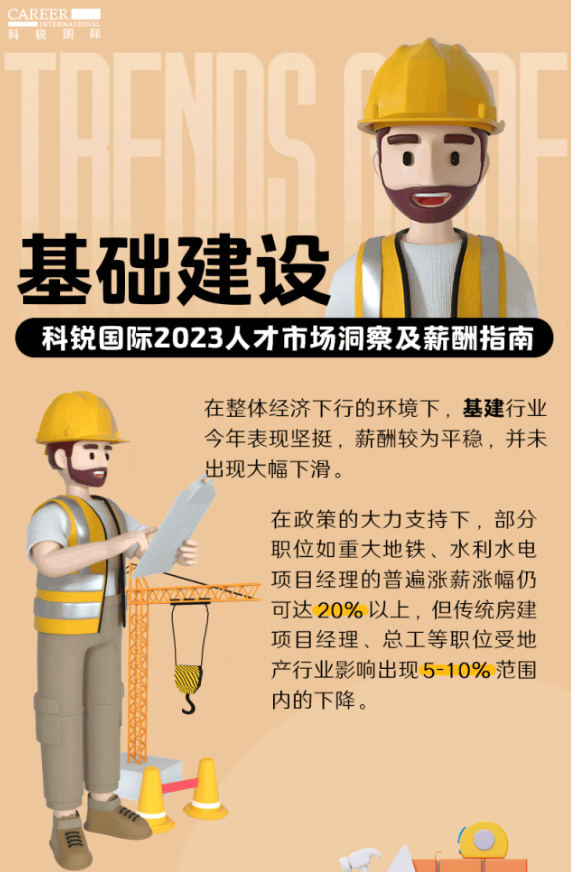 着眼于具体板块,目前,传统基础设施领域市政板块发展迅猛,包括市政道路、水利工程、环保、地铁、铁路、城际轨道等赛道均有稳定发展;而新兴领域,以新一代信息技术为主的“新基建”及新能源正如火如荼,信息基础设施、融合基础设施、创新基础设施等板块都将迎来广阔的发展前景,对应人才需求也随之蓬勃增长。